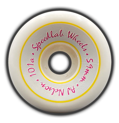 We are stoked to introduce the Speedlab Wheels AJ Nelson Pro model wheel.  This is AJ's 1st Pro model wheel and we couldn't be more hyped for him!  AJ can skate it all and does so oozing with style.  These wheels are 59mm/101A with rounded conical cuts on each side to provide a highly functional profile & shape made from the best formulas in the world for ultimate speed & control.  The overall width is 35mm with a contact patch of 23.5mm.  Artwork created by AJ himself.